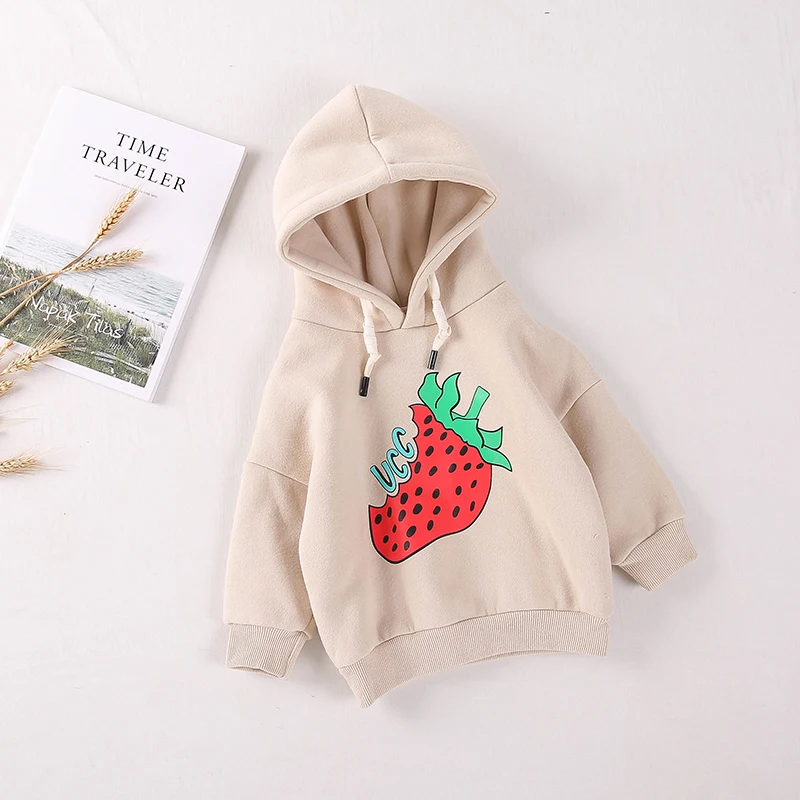 Sale!2 3 4 5 6 7 Y Girls Hoodies Plus Velvet Thicken Strawberry Print Hooded Sweatshirts for Girl Kids Clothing Autumn Winter 2019