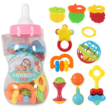 Sale!0-12 month 10pcs Baby First Rattles toys and Teether Toy with Giant Milk Bottle Grasp kids educational Toys for children$50.70 – $75.39 Select options