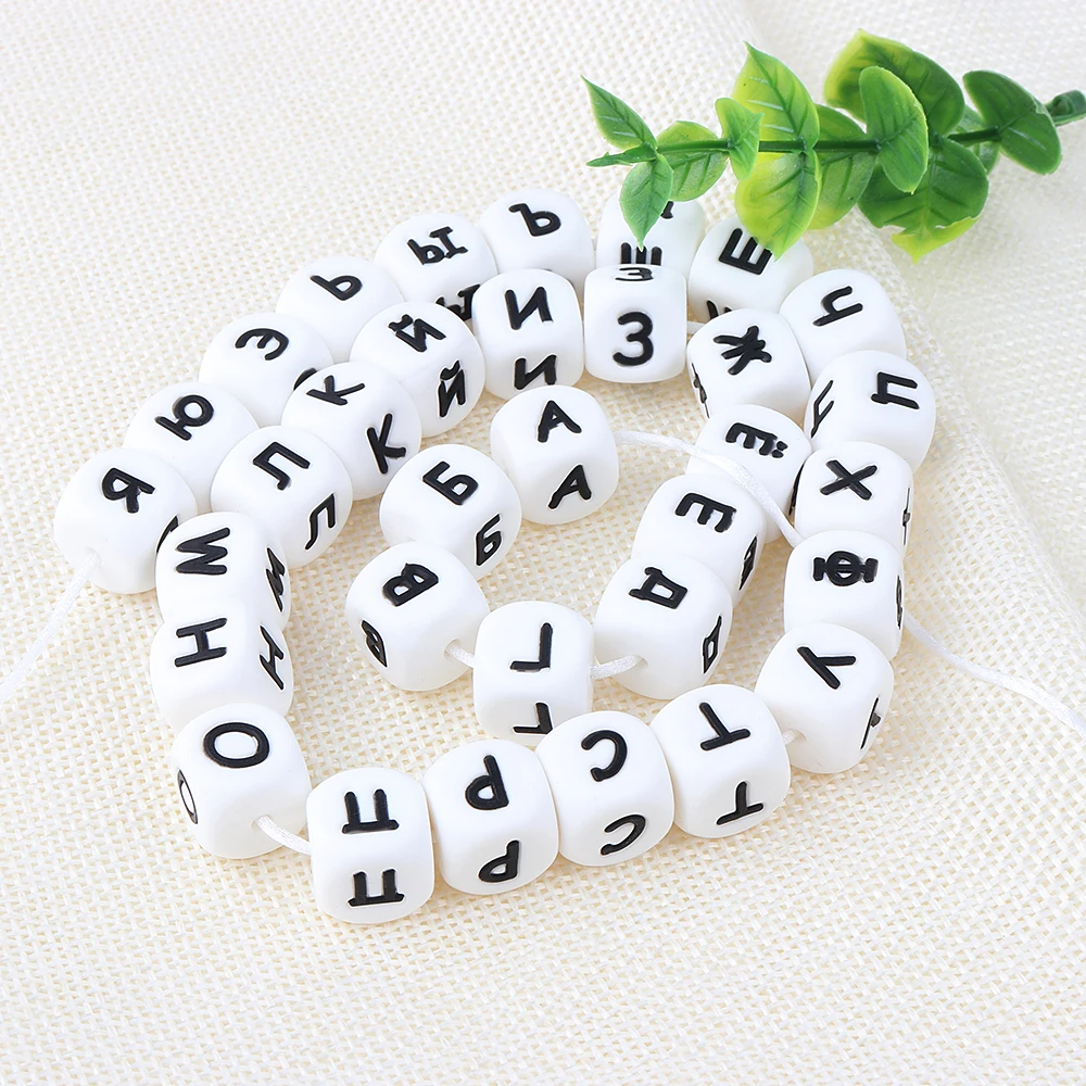 Sale!100pcs/set Russian letters Alphabet Beads Baby Teething Beads DIY Baby Name Pacifier Chain Silicone Baby Teether 12mm